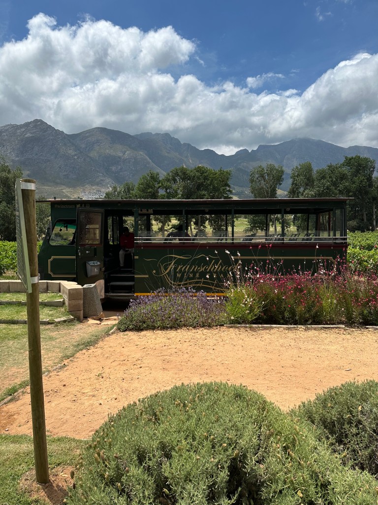 Exploring the Franschhoek wine region using the Franschhoek wine tram, train and tractor was a once-in-a-lifetime experience! No fuss about how to get around, BUT you do have to follow the schedule.